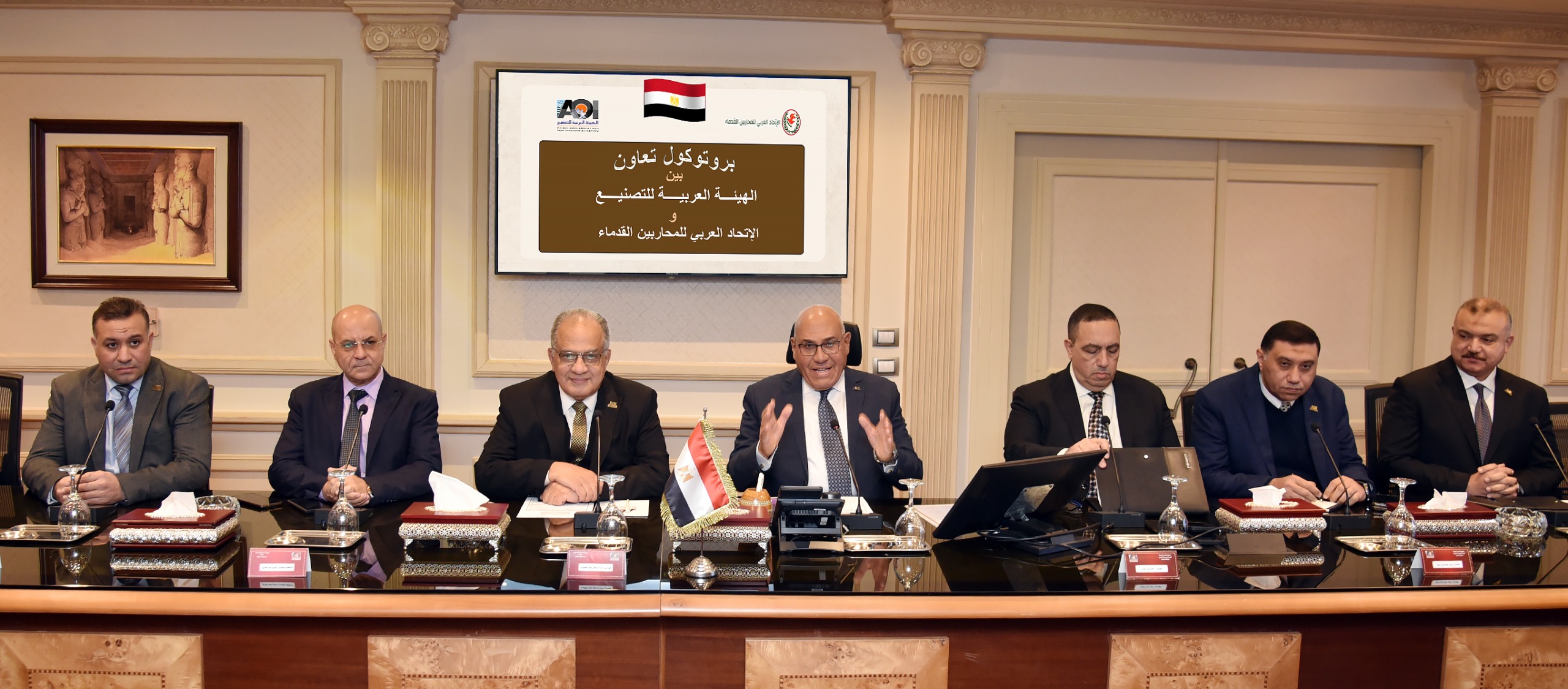 بزيارة إلى الهيئة العربية للتصنيع لعقد بروتوكول تعاون بين الهيئة العربية للتصنيع والإتحاد العربى للمحاربين القدماء وضحايا الحرب بحضور كل من :