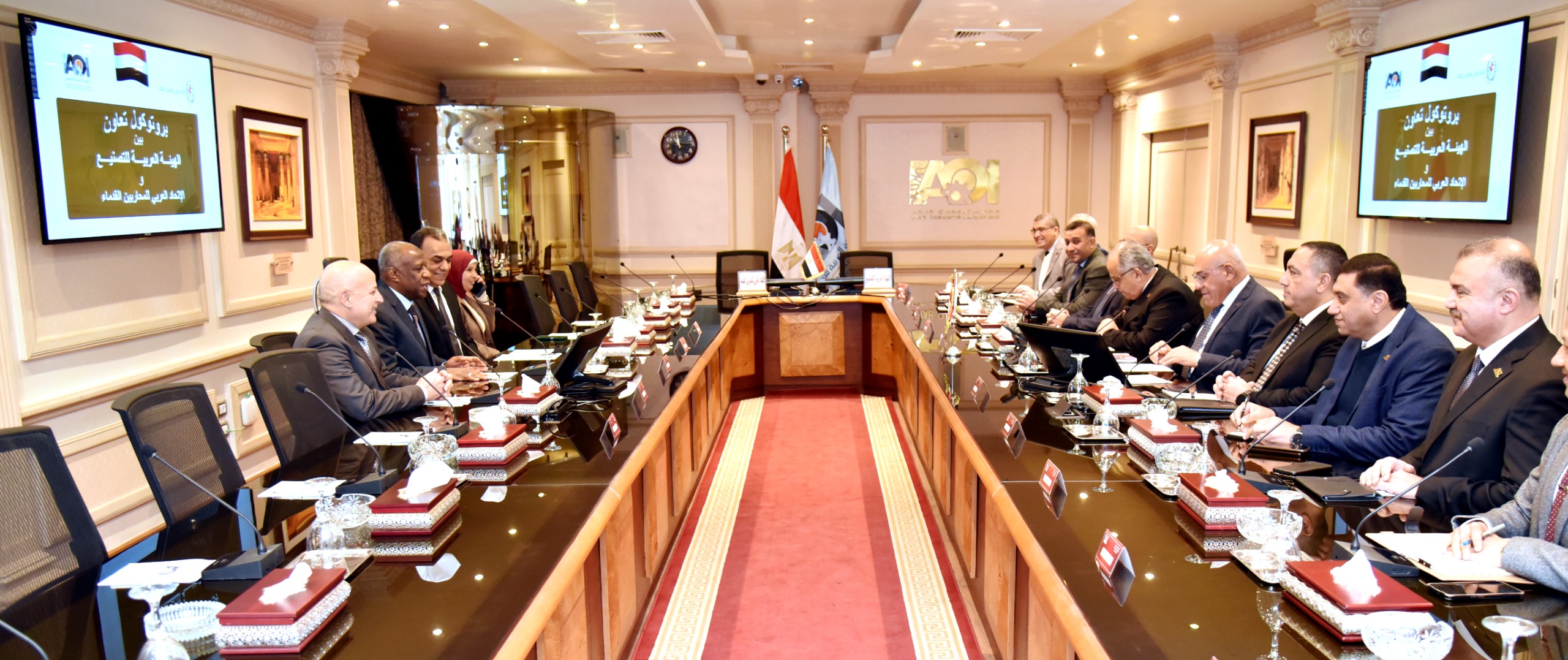 وتم إلتقاط صورة تذكارية على أن يتم تفعيل البروتوكول أعتباراً من مارس 2026 م ويشمل البروتوكول على أن مجالات التعاون تتضمن تقديم تخفيضات بنسبة 5% لأعضاء الإتحاد العربي للمحاربين القدماء وأسرهم على منتجات الهيئة العربية للتصنيع المتنوعة ومنها الأجهزة المنزلية الكهربائية والإلكترونية والأثاثات والكراسي الطبية المتحركة والأسرة الطبية وغيرها .