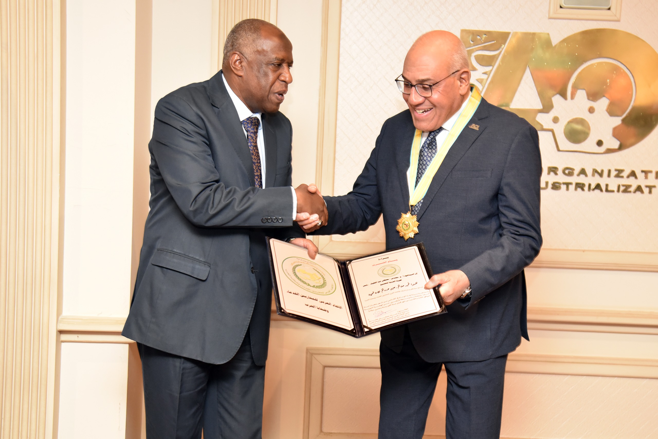 كما تم منح وسام الإتحاد العربى للمحاربين القدماء وضحايا الحرب اللواء أ.ح / مختار عبد اللطيف . . رئيس مجلس إدارة الهيئة العربية للتصنيع .