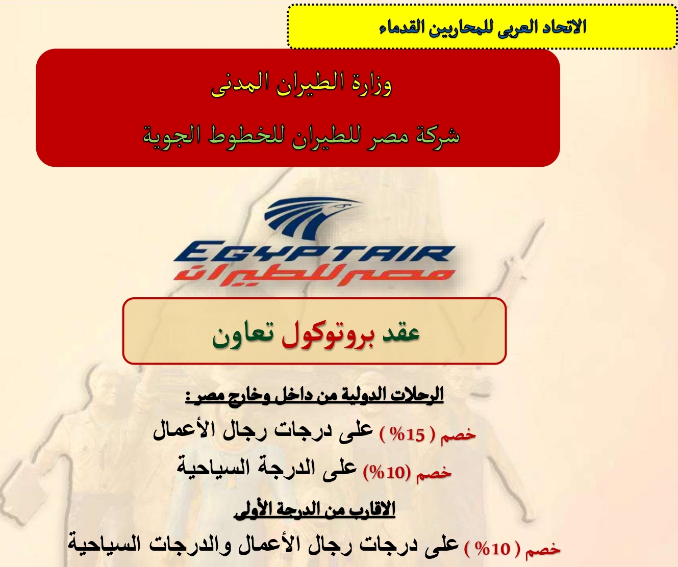 كل من يحمل كارنيه المحاربين الصادر من جمعية المحاربين القدماء وضحايا الحرب (مجدد وساري العمل به)، بالإضافة إلى الأقارب من (الدرجة الأولى الوالد – الوالدة – الزوجة – الأبناء).